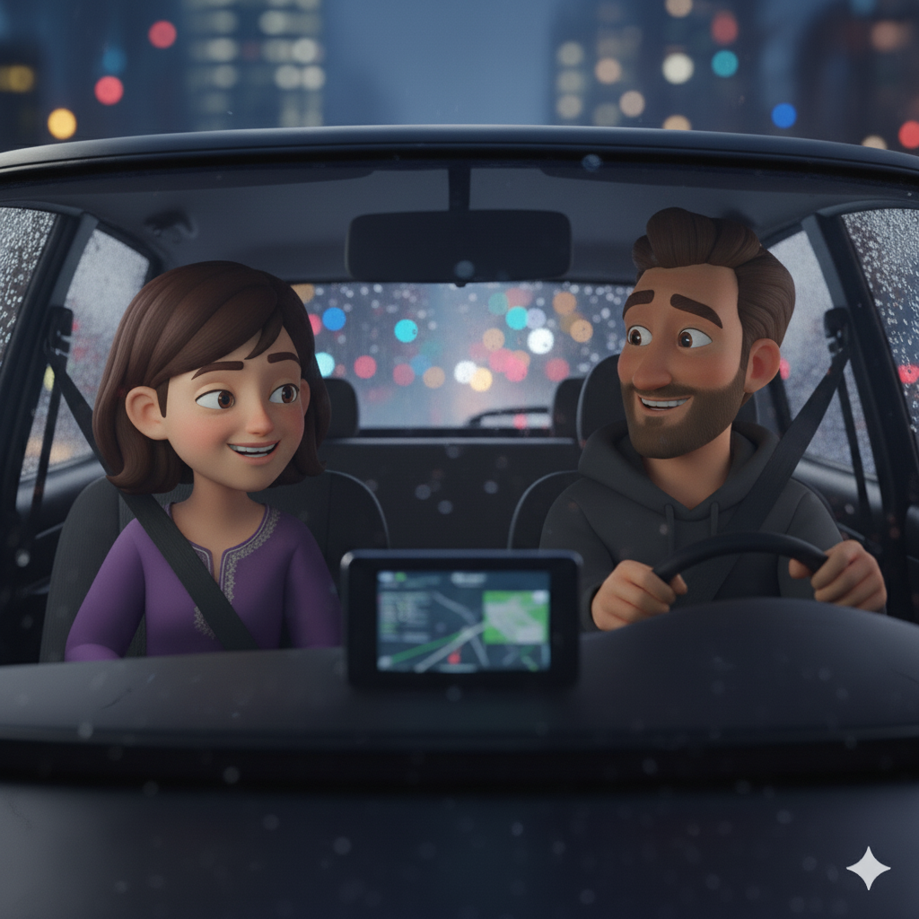 Mumbai’s late-night roads felt softer than usual, wrapped in a kind of hush that didn’t need filling. Sameer drove slowly, wipers brushing away the drizzle, while Radha watched raindrops race each other down the glass like they had somewhere urgent to be.